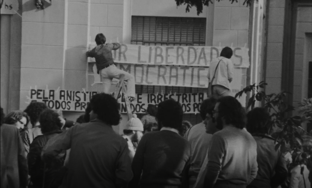 São Paulo, década del 70. En las calles del centro, manifestantes reivindican amnistía para presos políticos y el fin del régimen militar. Estudiantes y trabajadores convocan a una huelga general. En medio de la manifestación, las cámaras registran escenas de represión policial.