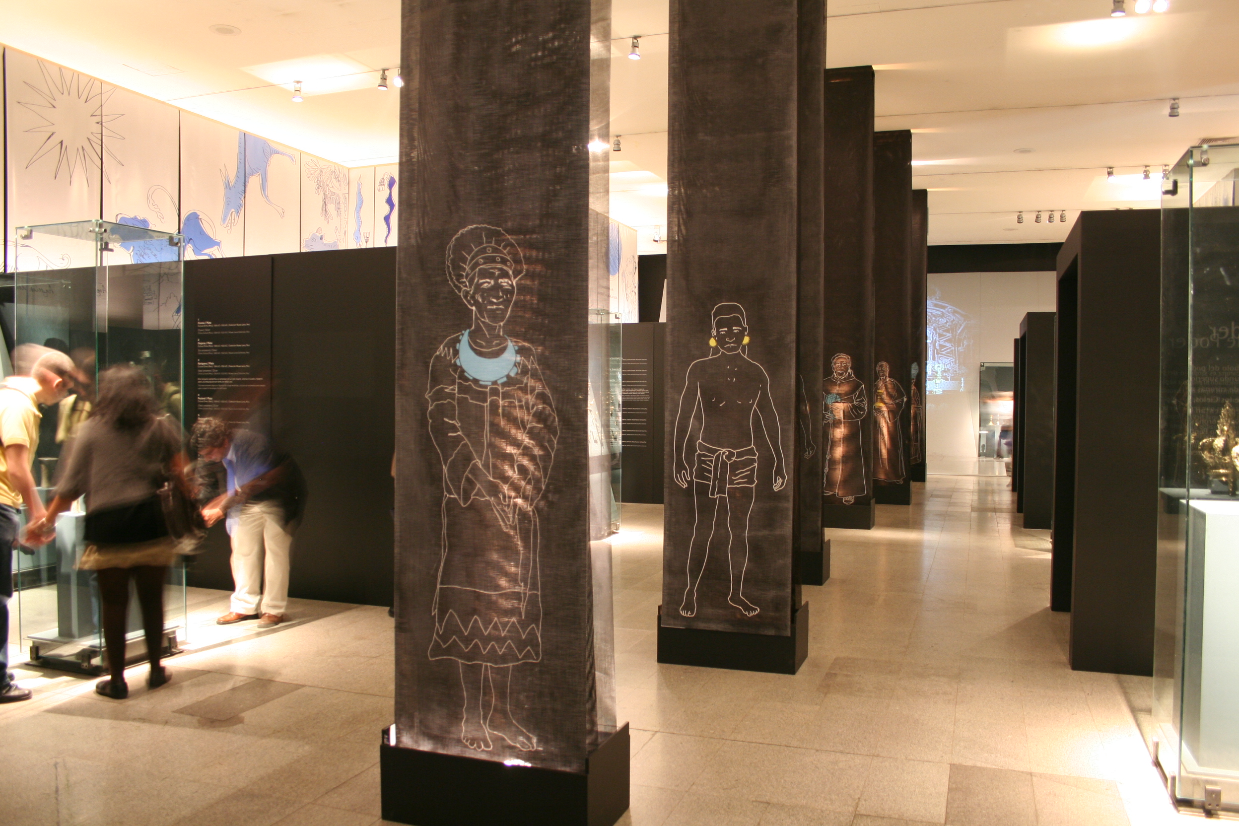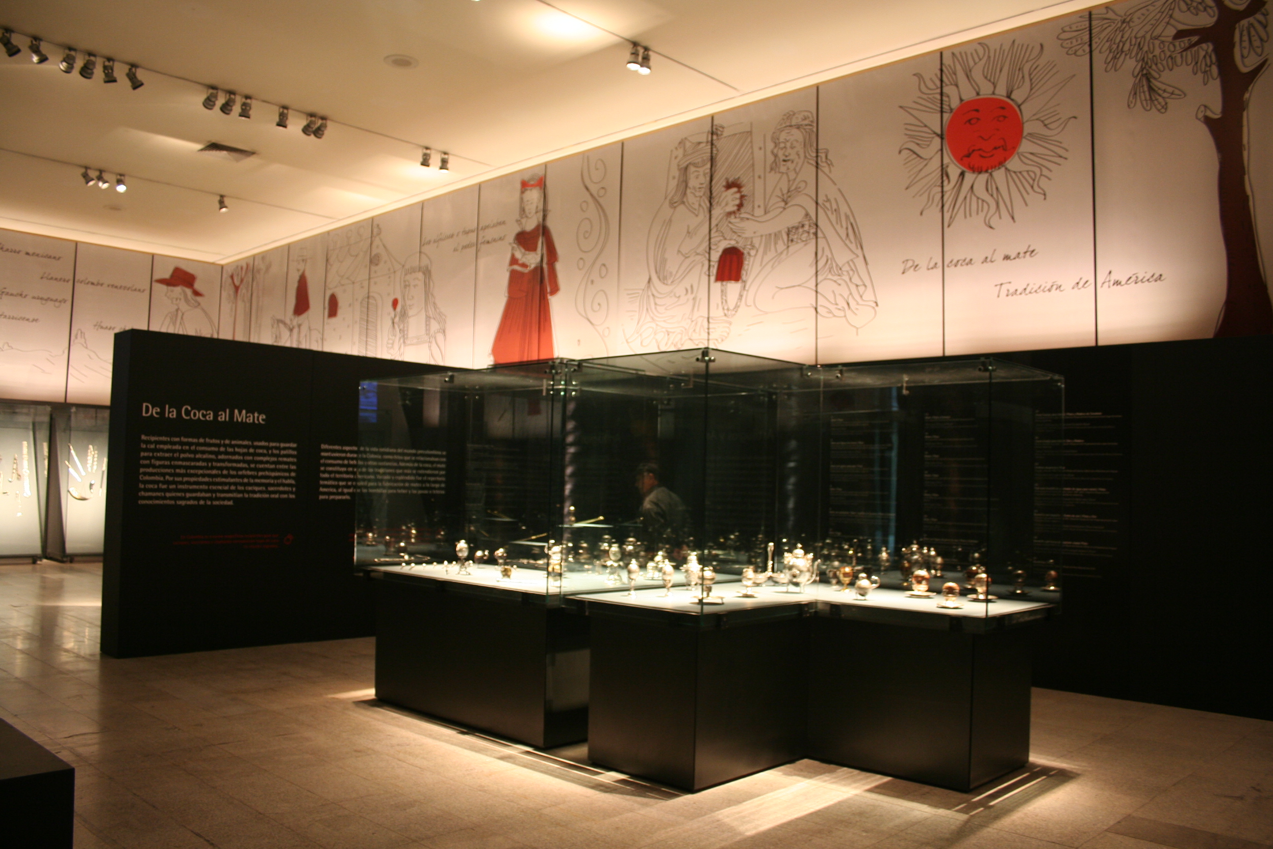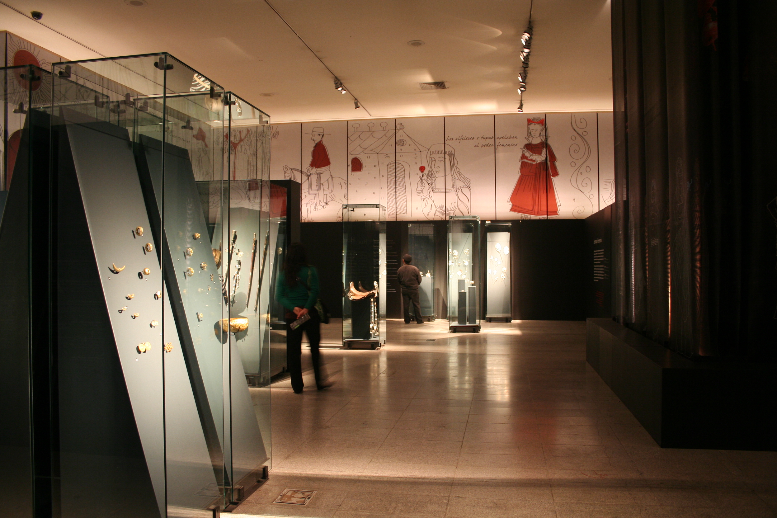 The pieces exhibited at the Centro Cultural Palacio La Moneda were provided by the Museo de Arte Popular Americano Tomás Lagos (MAP), the Museum of Decorative Arts, the Chilean Pre-Columbian Museum, the Museum of National History, the La Merced Museum, and the Museum of Colchagua, in addition to the Parroquia Nuestra Señora de la Merced, Petorca, Chile; the Spanish American Art Museum Isaac Fernández Blanco, in Argentina; the Gold Museum, the Bank of the Republic of Colombia, the Pedro de Osma Museum and the Larco Museum in Perú; the National Museum of Costa Rica, the Banco Central del Ecuador Museum; the Gaucho Museum in Uruguay; the Museum Casa Nacional de Moneda in Potosí, Museum of sacred Art of San Miguel de la Ranchería of Oruro and Murillo Museum, Bolivia, and the National Museum of Viceroyalty of Mexico.