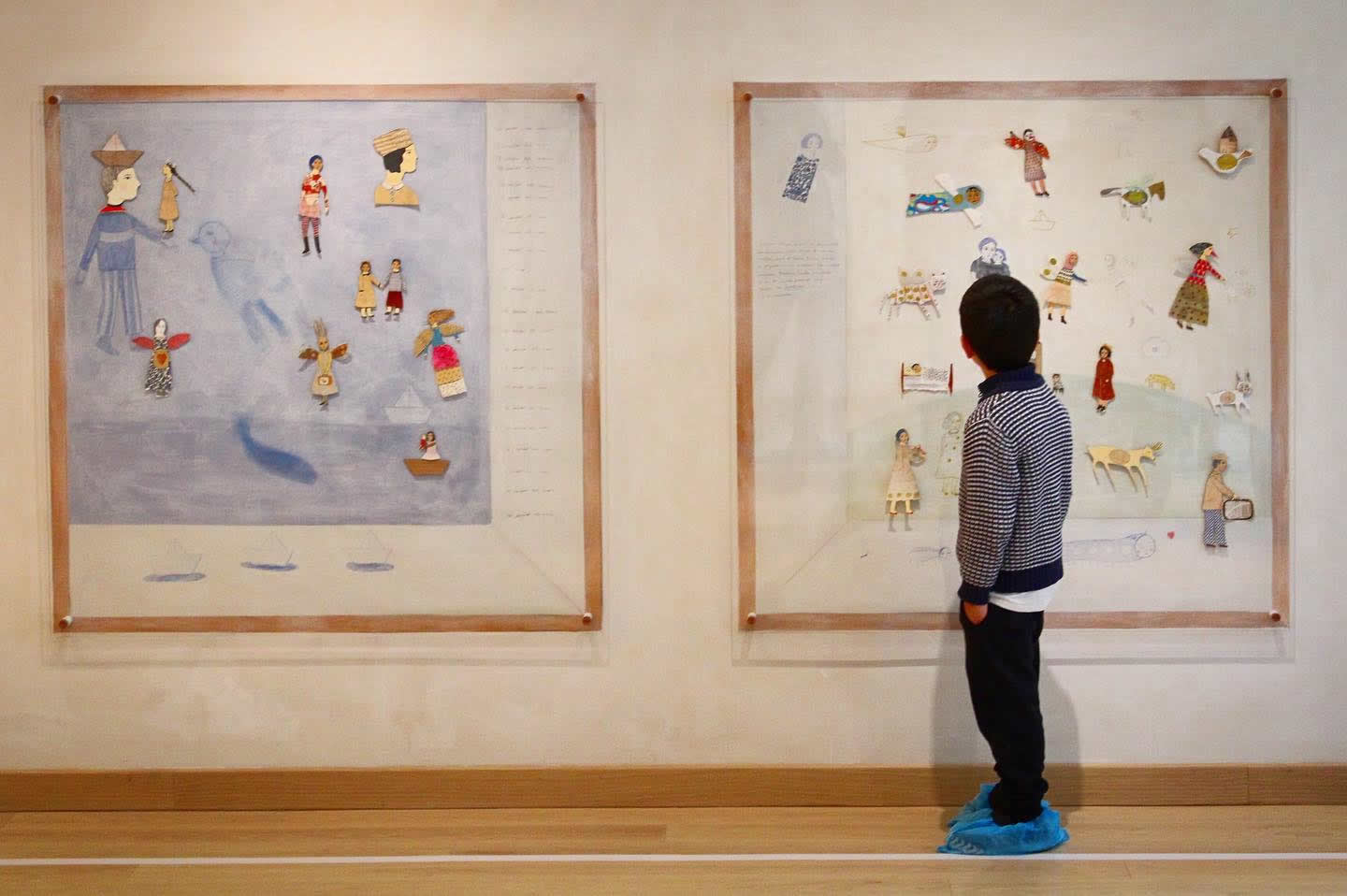 The exhibition presents small, everyday situations created with paper figure cut-outs such as birds, winged men and women, that make reference to people in transit, but who are also found sheltered and welcomed. According to the artist, the exhibition intends for girls and boys to “discover the different layers of the exhibition, weaving image and text, and inquire into new ways of knowledge, moving through objects”, in the same way as they immerse themselves into the pages of a book.