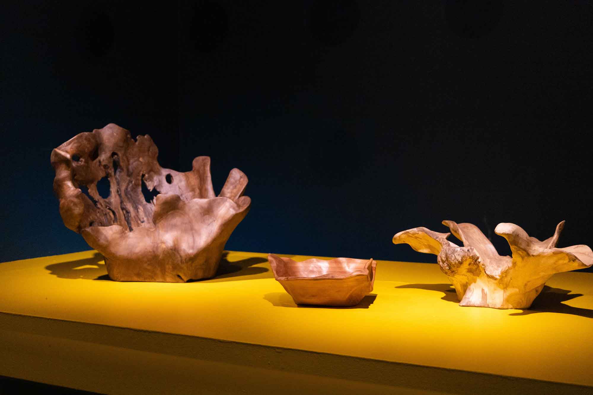 - Egon Muñoz (1978). Vive y trabaja en la localidad de Candelaria Alta, a 6 kilómetros de Pucón, Región de la Araucanía. Aunque desde pequeño sintió gran conexión con los bosques de su región, sus comienzos como artesano se remontan a 1997 cuando gracias a un hermano mayor aprendió a tallar la madera nativa, oficio que enriqueció posteriormente con su formación como técnico agrícola.