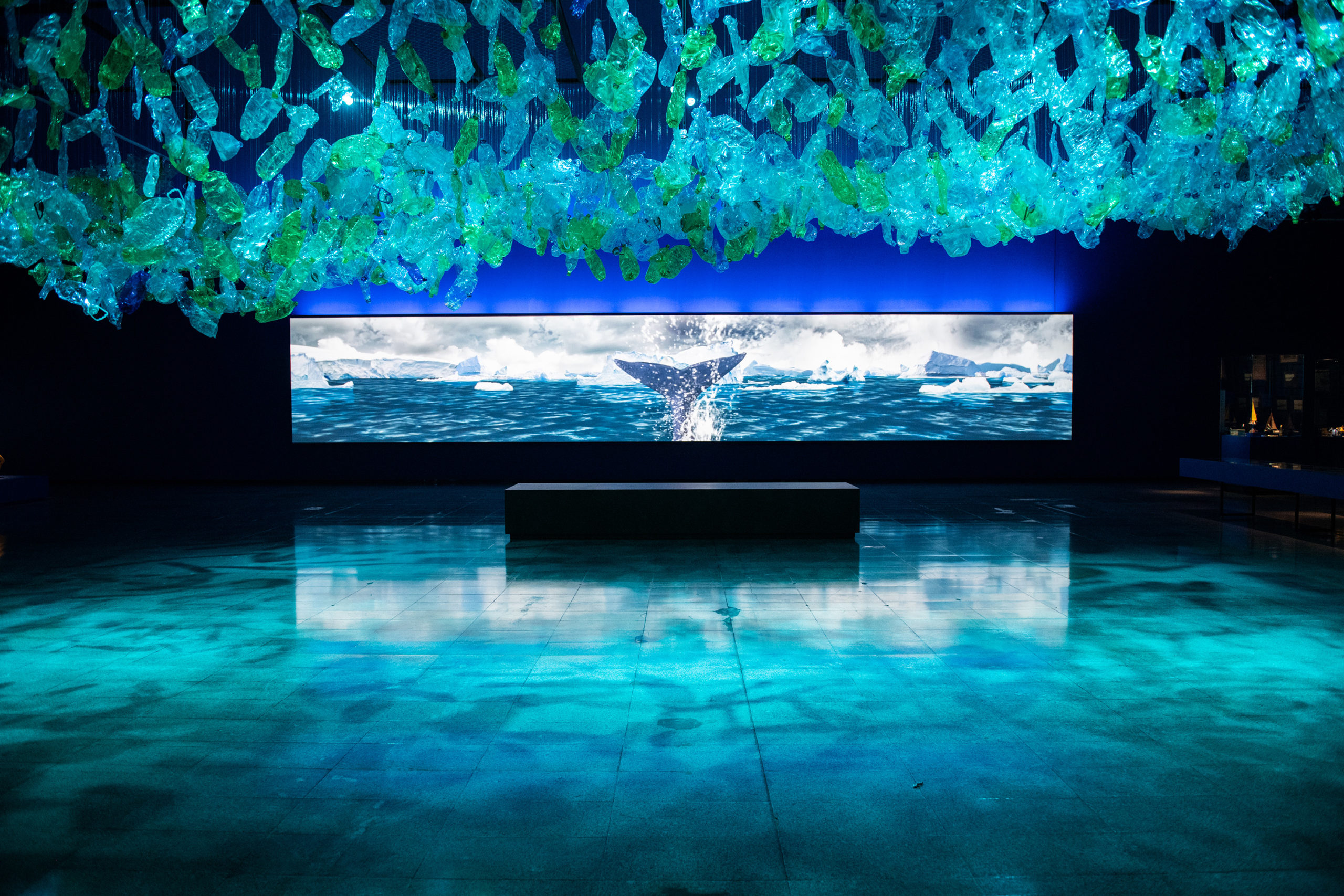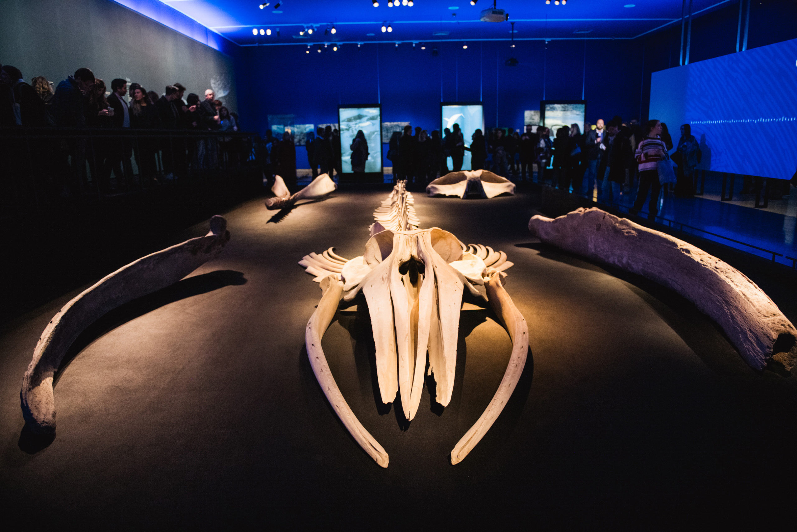 La ballena, mamífero que cuenta seis diferentes especies en Chile, es el hilo conductor de la exposición, organizada en cuatro ejes temáticos. A través de este recorrido, se vinculan las dinámicas propias de los pueblos originarios, el rol de los primeros exploradores y naturistas, y temas actuales de conservación de especies y ecosistemas marinos, considerando sus riesgos y amenazas por la contaminación y el uso excesivo del plástico.