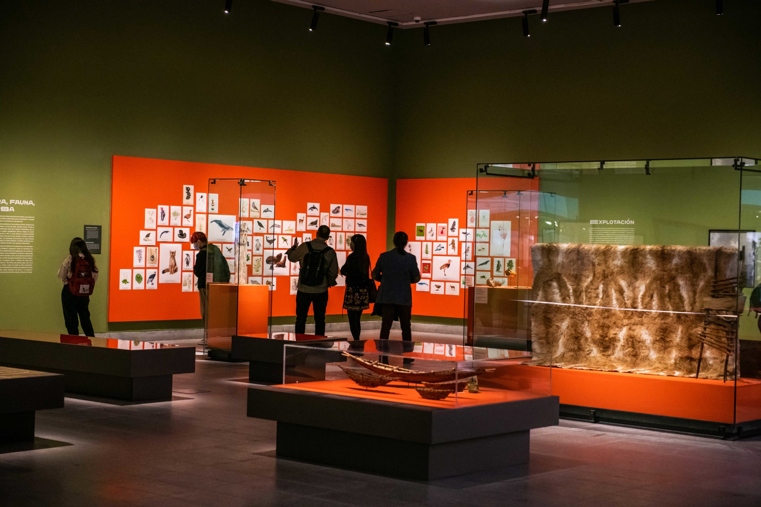 Un eje central de la muestra está en la biodiversidad. Más de 100 ilustraciones locales presentan animales como lobos marinos, focas, coipos, huillines, cóndores, pumas y un sin fin de aves migratorias. Y a través de fotografías se muestran los glaciares y sus diversas respuestas a los cambios climáticos, hongos, musgos, líquenes, briófitas que viven en la humedad terrestre, como también bosques de algas, estrellas de mar, esponjas, bivalvos, moluscos, caracoles, crustáceos y erizos que habitan cerca del mar.