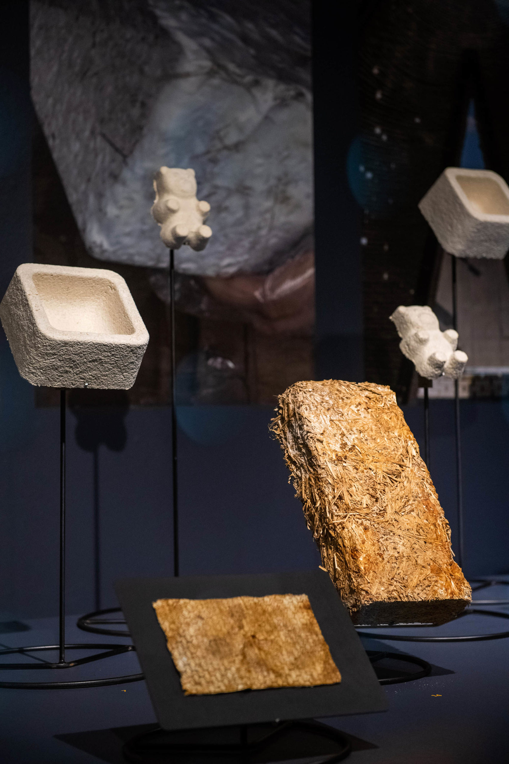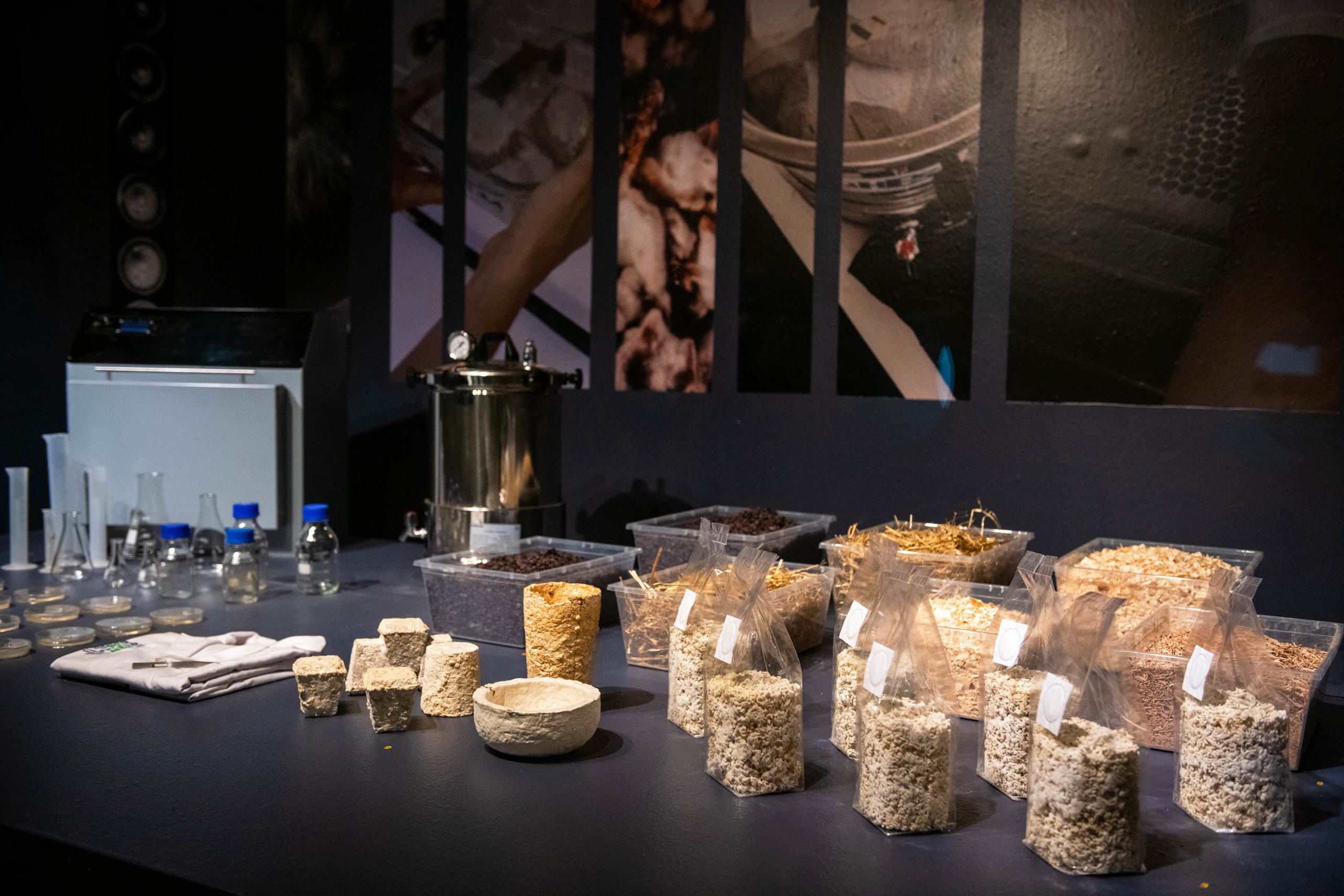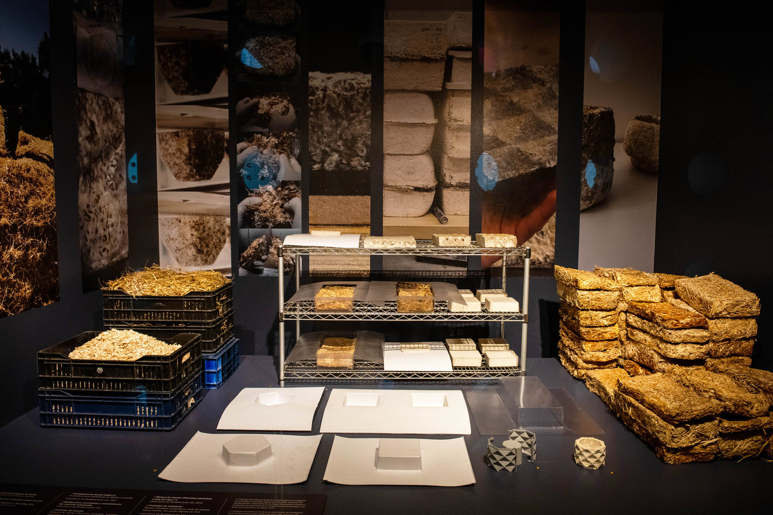 ● El micelio y la construcción de nuestro entorno: se muestran objetos de gran tamaño fabricados en base a micelio.