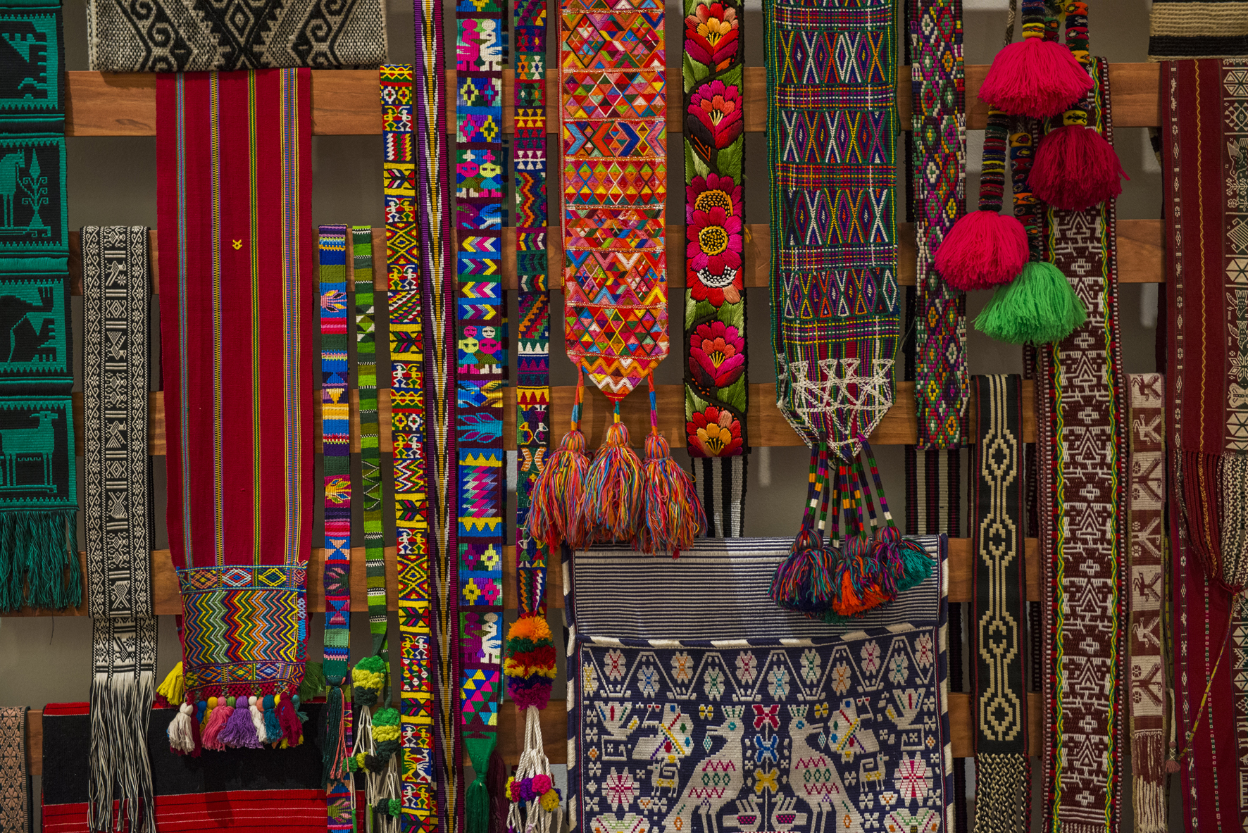 Sala Andes reúne una vasta y variada colección de elementos textiles que dan cuenta de diferentes expresiones culturales que se han ido plasmando a partir de la técnica del tejido y del telar, y de una misma forma esencial de vestuario. Vestimentas tradicionales como huipiles, trajes típicos de México y América Central, además de mantas y ponchos, presentes en un sinnúmero de comunidades, nos sorprenden por la simplicidad de su estructura, que contrasta con la complejidad y belleza de los bordados que los cubren y donde se manifiestan la singularidad de cada una de las visiones culturales aquí presentes.