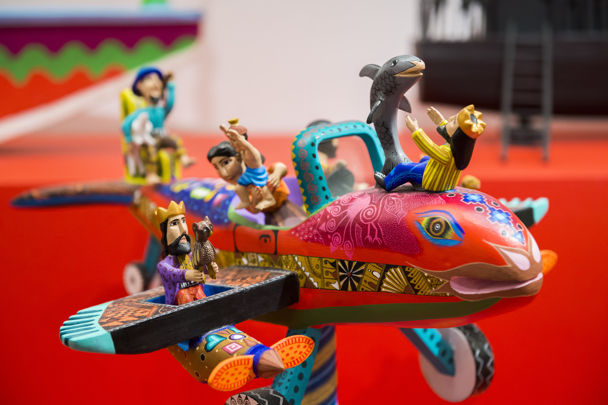 La exposición Grandes Maestros del Arte Popular de Iberoamérica. Colección Fomento Cultural Banamex presenta una exuberante exposición, con más de 2.500 piezas de las más diversas expresiones del Arte Popular, que dan cuenta de la pericia técnica y del talento de más de 695 Maestros Artesanos provenientes de los 22 países que configuran el extenso territorio iberoamericano.