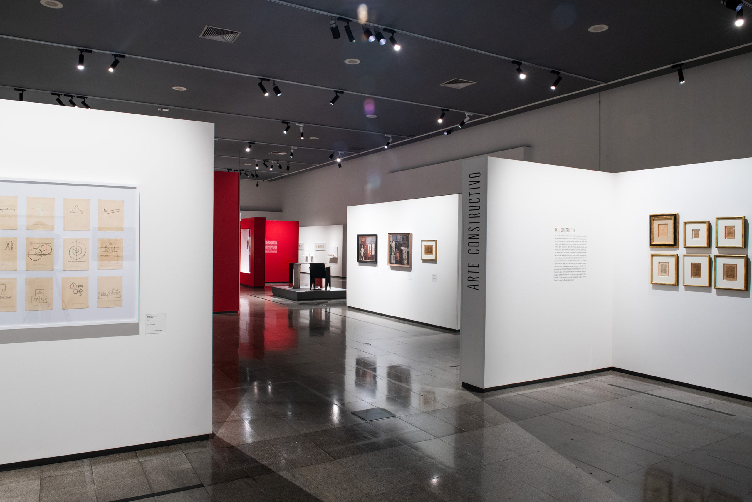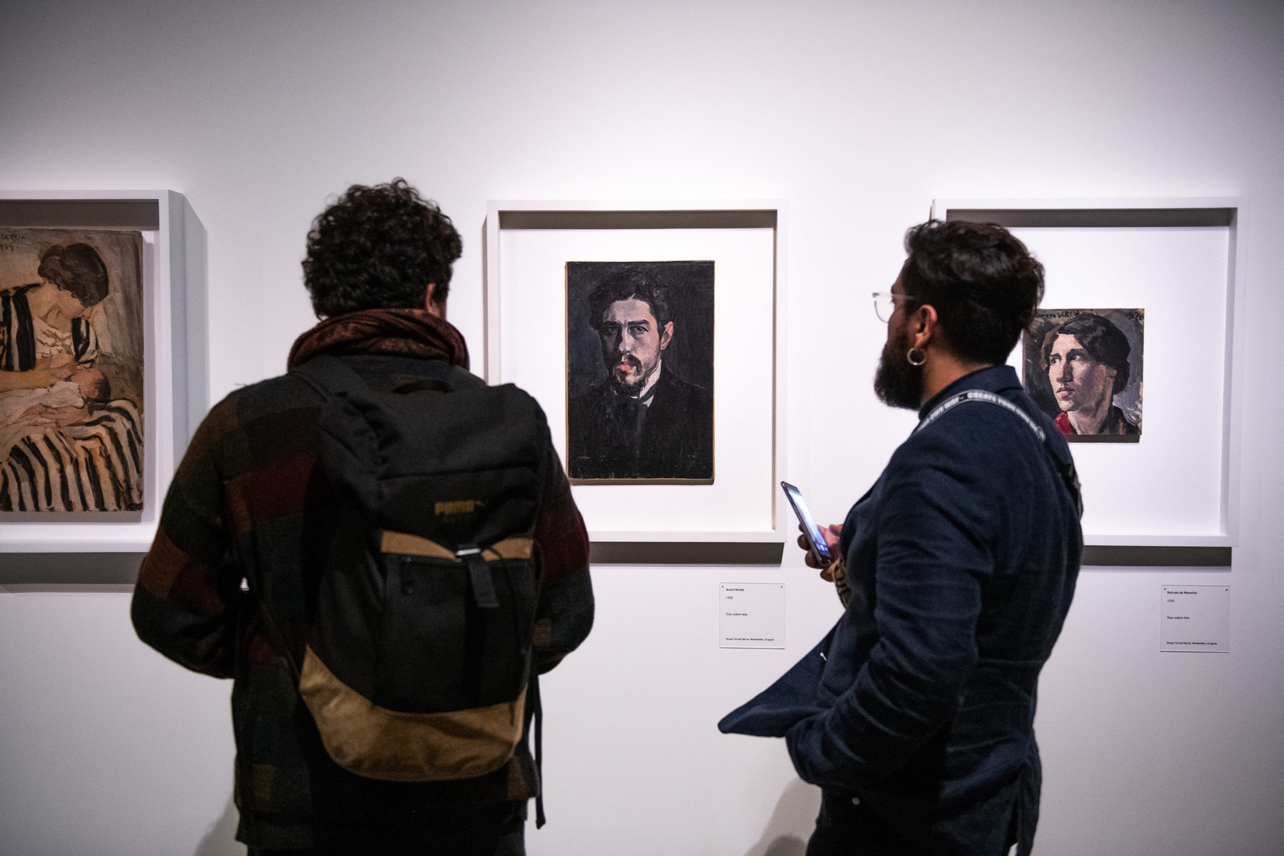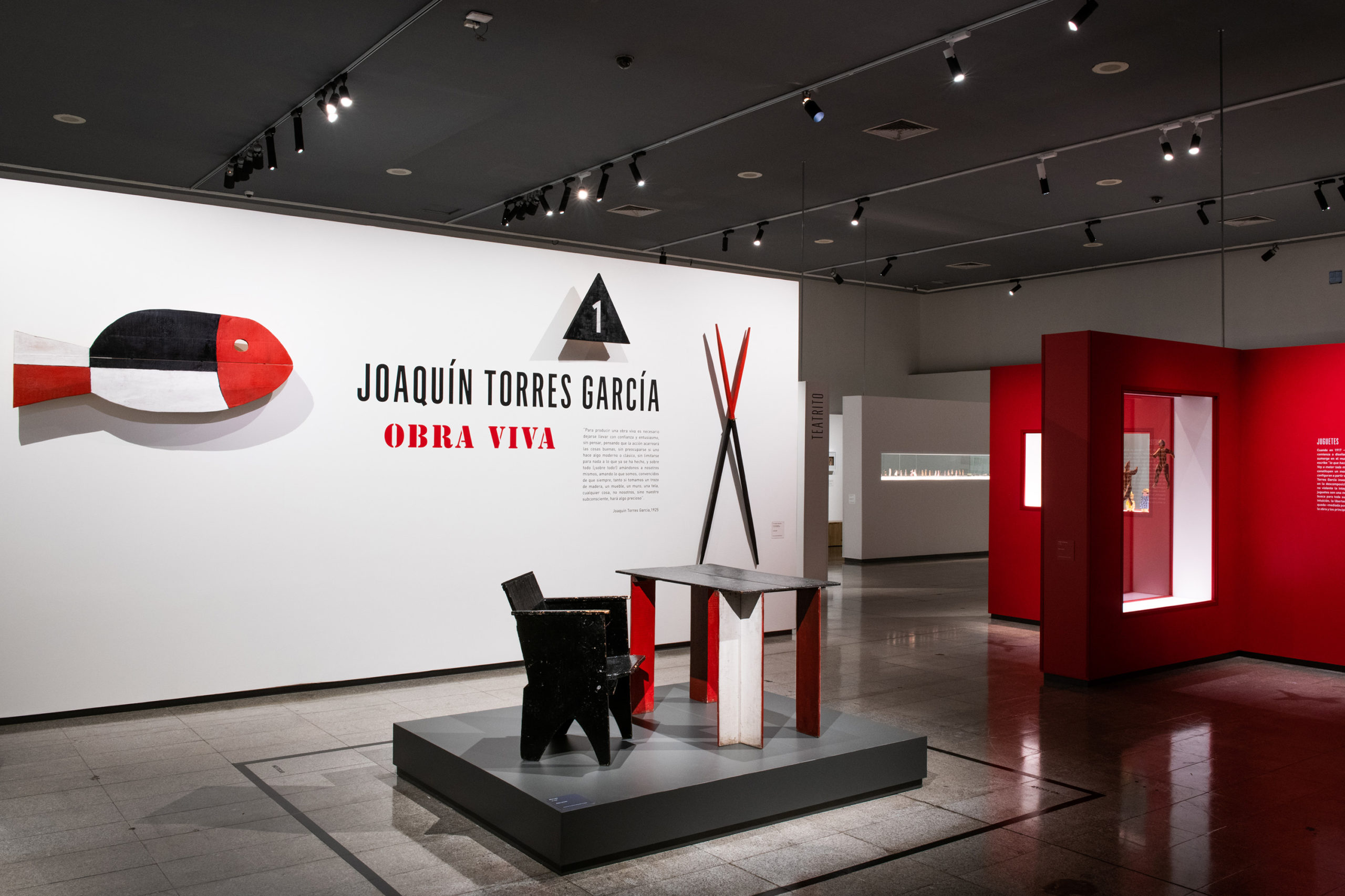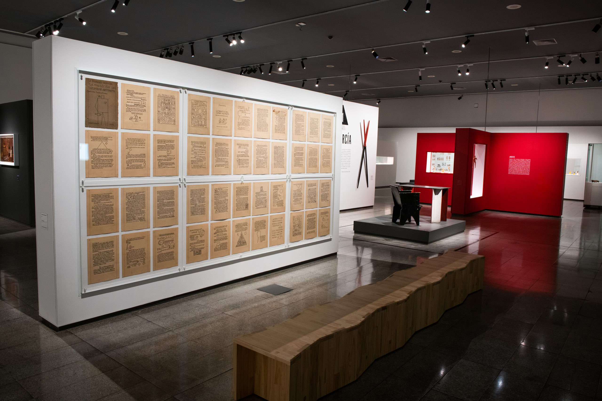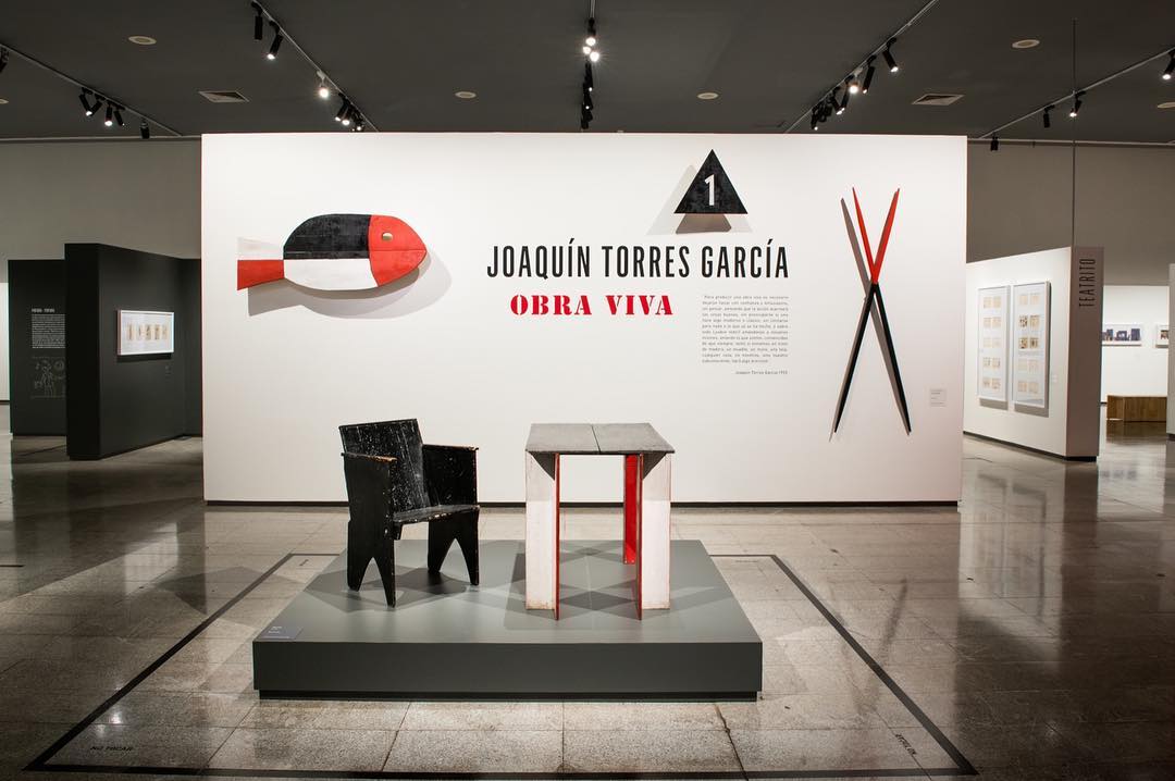 La muestra da cuenta de su trayectoria y sus facetas. Se exhibe desde su primera obra, Retrato del Señor Gandelbeu, realizada en 1886, cuando tenía tan solo 12 años; y se presenta también su escritorio original, traído desde Montevideo. Ocupan un lugar muy importante sus juguetes, que después se comercializarían como Juguetes Aladdin, y que revelan lo más lúdico del artista; esas creaciones incluyen los teatritos que construyó para sus hijos, que son expuestos junto a sus decorados y personajes intercambiables. Estas piezas, así como las de la sección dedicada a su familia, muestran la perspectiva más íntima de Torres García.
