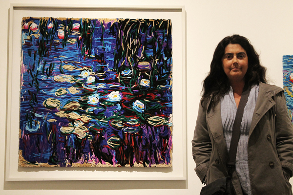 Pantys de lycra, telas, lanas, fibras sintéticas, elásticos, lentejuelas y botones son algunos de los elementos presentes en estas piezas que abordan temas diversos, desde la subjetividad de la memoria (siempre presente en la obra de Nury González, una artista que es referente en los lenguajes del bordado, la costura y el zurcido) hasta la violencia contra la mujer (en los rostros de mujeres quemadas con ácido, que Daysi Cruz imprime en pantys de lycra) pasando por la disfuncionalidad latente en la supuesta funcionalidad de la familia y su organización doméstica (la cual pone de manifiesto Cristián Velasco, utilizando lana de colchones en desuso para forrar ollas y sartenes). En tanto que Malu Stewart rinde homenaje a Claude Monet, reemplazando por limpiapipas las pinceladas impresionistas; Marcela Moraga vincula los diseños textiles prehispánicos con la cultura digital, a través de la imagen electrónica y el pixel; Catalina Bauer alude al valor arqueológico de objetos insignificantes y desechables (como los elásticos de billete) y María Jesús Román recurre a los reflejos de las lentejuelas para reproducir una escena cotidiana que nunca es vista del mismo modo por los diferentes espectadores.
