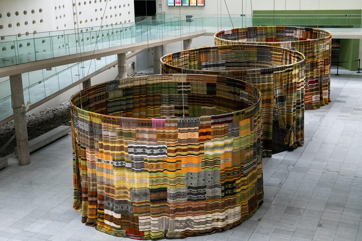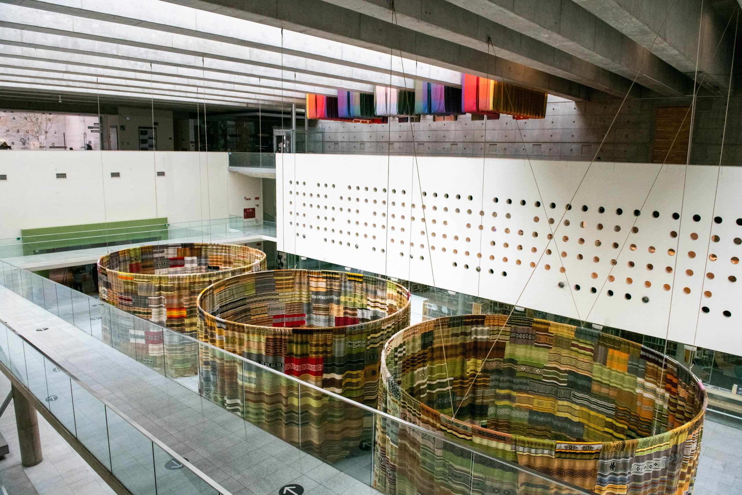 Cuatro FuerzasMeli Newen – Cuatro Fuerzas, es un proyecto que entrelaza más de 1.000 creaciones de 212 tejedoras de la Región de la Araucanía y de la comuna de Tirúa, quienes mediante un proceso de creación, a partir del witral, fibras naturales y teñidos de origen vegetal, dan origen a textiles que se unen en diferentes propuestas de diseño y montaje, generando un gran tejido colaborativo único, que representa la unión y la solidaridad.