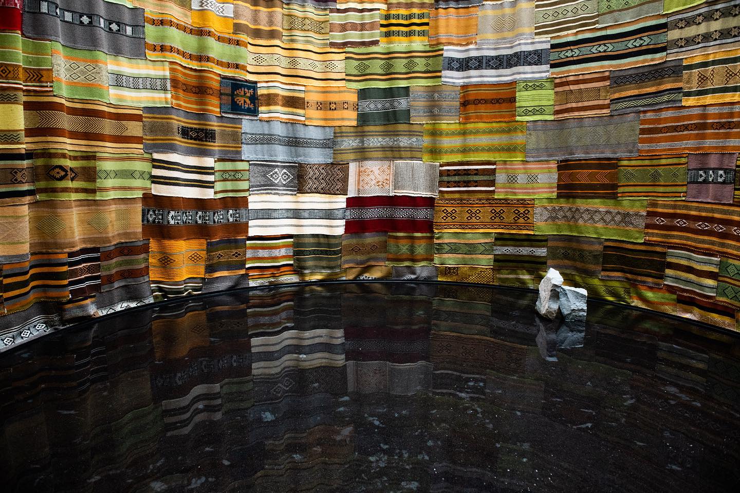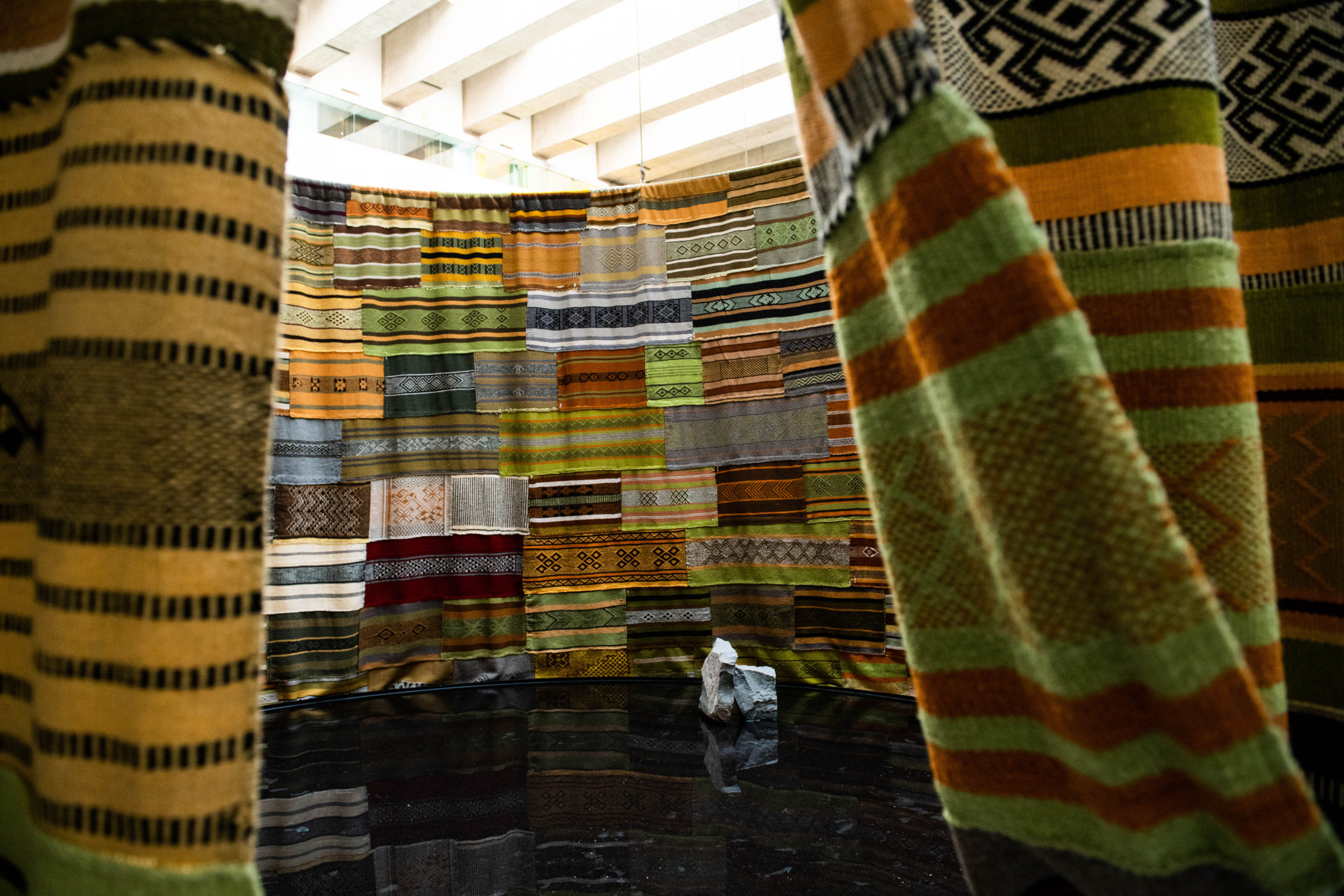 La instalación, que se exhibe en el Hall Central del Centro Cultural La Moneda, consta de 4 círculos conformados por anillos colgados de telares mapuches. Estos darán origen a 4 espacios que exhibirán de forma independiente la materia prima, los vegetales que dan origen a las tinturas y un espacio en donde se refleja el cosmos sobre un espejo de agua. En tanto, una cuarta sala es el círculo del wallmapu, el cual está conformado por un trazado en el piso.