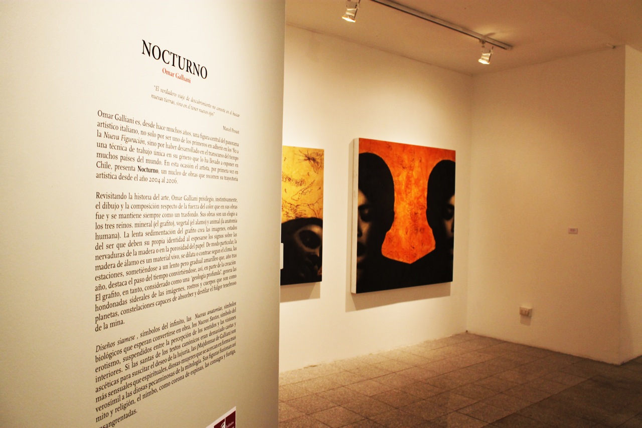 Omar Galliani, nació en 1954 en Montecchio Emilia, estudió en la Academia de Bellas Artes de Bolonia y enseña pintura en la Academia de Bellas Artes de Carrara. Sus obras son un elogio a los tres reinos: mineral, vegetal y animal; ha sido reconocido por utilizar una técnica de trabajo única en su género que lo ha llevado a exponer en muchos países del mundo. En esta ocasión, el artista, por primera vez en Chile, presenta una muestra que recorre su trayectoria artística de los últimos años.