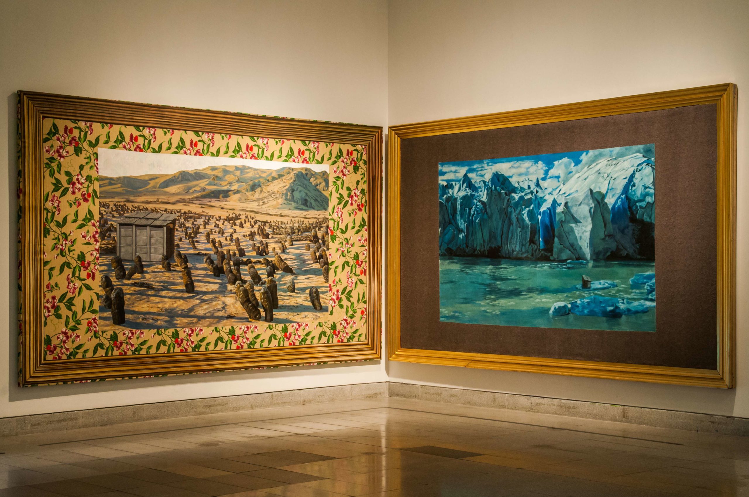 La exposición parte con los primeros mapas y dibujos naturalistas desde el siglo XVII, resaltando los realizados por Amado Pissis como una primera georeferencia. Estos elementos dan cuenta de la percepción de nuestra geografía física y cultural, desarrollando una mirada científica/naturalista; luego pasamos por la pintura académica y moderna, que retratan el paisaje ideal, como Alessandro Ciccarelli, Pedro Lira, Onofre Jarpa, Valenzuela Llanos, Antonio Smith, entre muchos otros. Este recorrido del paisaje natural se elabora como una primera parte que luego se conecta con el paisaje cultural.