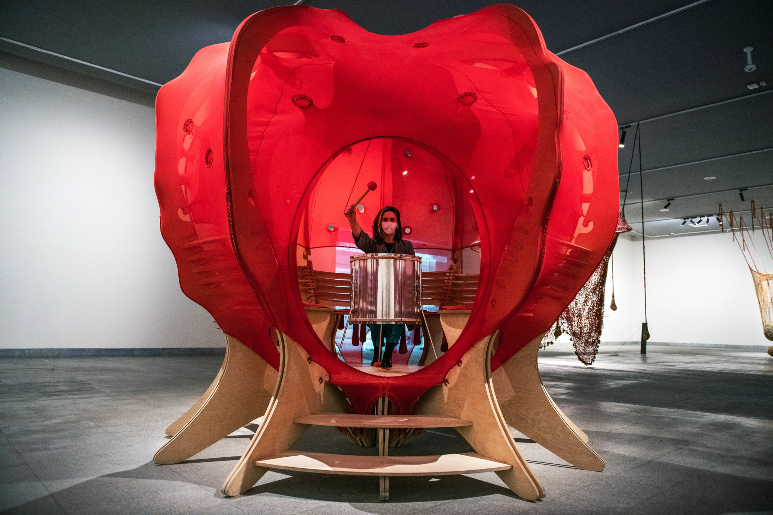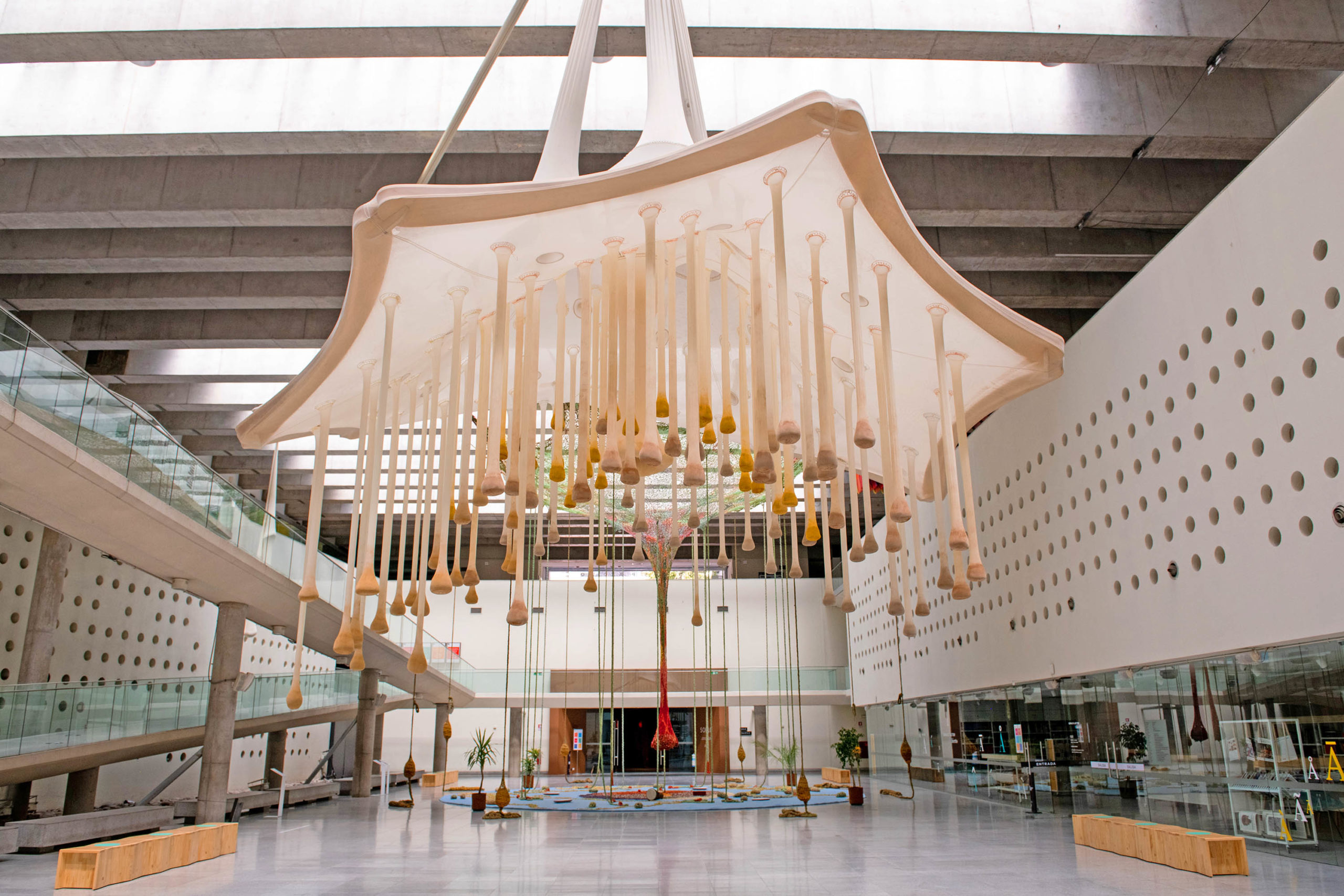 Soplo es una retrospectiva con más de 80 obras del destacado artista brasileño Ernesto Neto (Río de Janeiro, 1964), que se despliegan en las dos grandes salas y en el hall principal de CCLM con un recorrido lúdico y participativo entre piezas de diferentes formatos, junto con enormes esculturas inmersivas. En su trabajo, íntimamente ligado a la labor que realiza junto a las comunidades amazónicas, Neto investiga prácticas y saberes ancestrales, para presentarnos a través del trabajo colaborativo, nuevas realidades y posibilidades para el arte contemporáneo y su vinculación con los patrimonios.